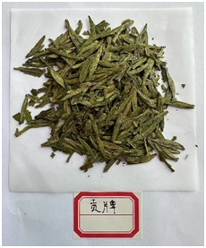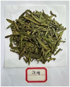 研究采用的手持式气味检测仪是基于MEMS微热板八嗅元气味传感器的检测设备来对龙井茶叶样本进行分析。该平台的核心是利用独特的双层膜结构设计为分析高度相似的复杂气味分析提供了多维、高灵敏度的解决方案。实验选用来自浙江杭州西湖产区的龙井茶作为研究对象。所有样本均由当地权威质检部门依据《GB/T 18650-2008 地理标志产品 龙井茶》国家标准进行等级评定,确保等级标签的准确性。最终选定特级、一级、二级、三级作为代表性梯度,每个等级包含两各种类的茶叶,龙井茶样本实物如图3-35所示。为了检验数据的稳定性和准确性,每种样本选取3份作为重复。共计24份初始样本。